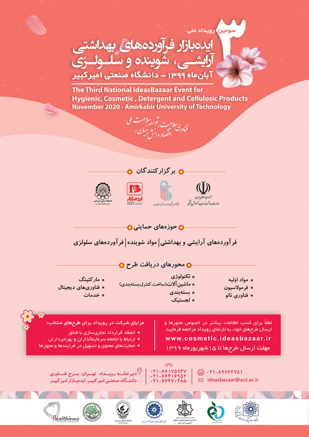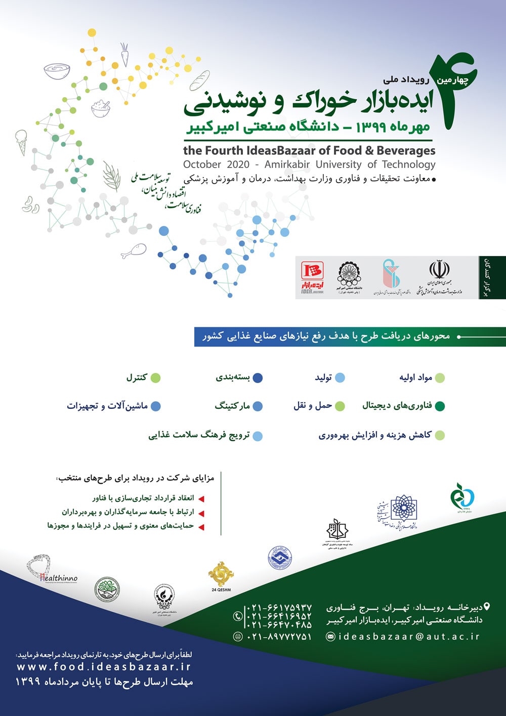 به استحضار می رساند مرکز تبادل فناوری ایده بازار دانشگاه صنعتی امیرکبیر به عنوان کارگزار رسمی تبادل فناوری دفتر توسعه فناوری سلامت وزارت بهداشت، درمان و آموزش پزشکی با همکاری مشترک این دفتر و دانشگاه علوم پزشکی ایران با هدف شناسایی و حمایت از فناوری های نو در حوزه های صنایع غذایی، بهداشتی، آرایشی، شوینده و سلولزی اقدام به برگزاری رویدادهایی تحت عنوان "چهارمین رویداد ملی ایده بازار خوراک و نوشیدنی" و "سومین رویداد ملی ایده بازار فرآورده های بهداشتی، آرایشی، شوینده و سلولزی" نموده است.