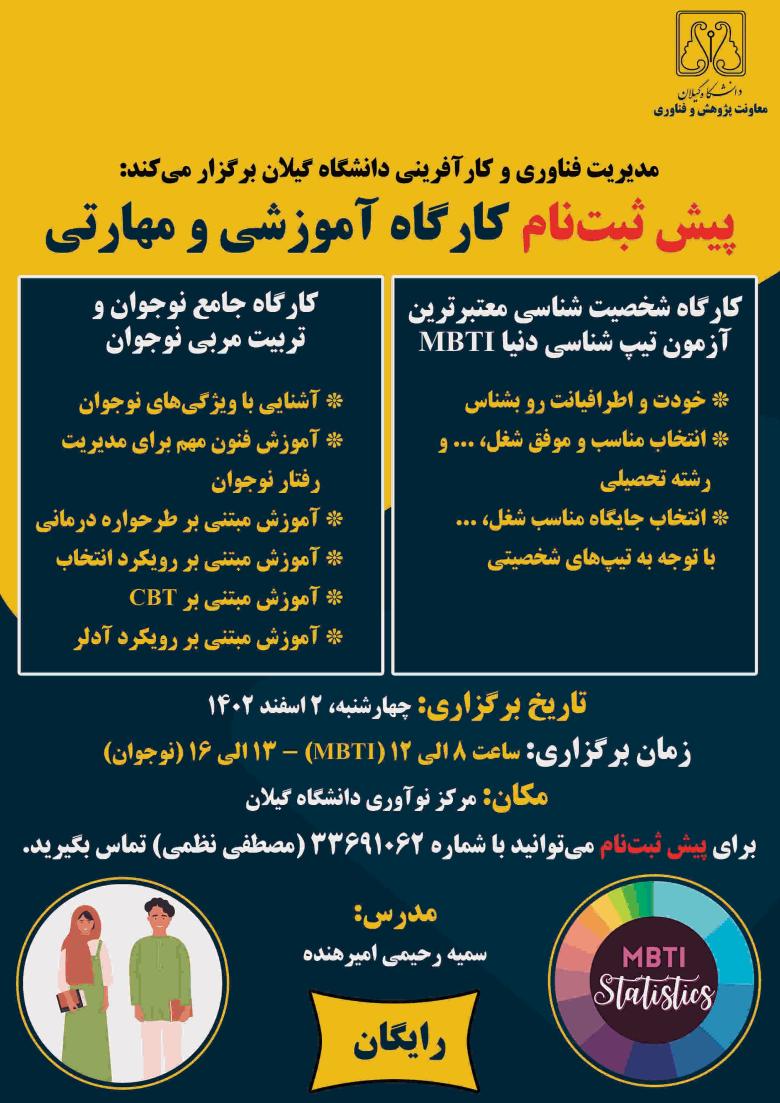 دوره آموزش مقدماتی نرم افزار MATLAB دوره آموزش مقدماتی نرم افزار کاربردی MATLAB، آمادگی لازم را برای انجام پروژه‌های مختلف دانشگاهی و تحقیقاتی توسط دانشجویان رشته‌های مختلف و علاقه‌مندان به فعالیت های پژوهشی فراهم می‌کند و پیش نیازی برای ورود به دوره‌های پیشرفته پردازش سیگنال‌های مغزی EEG، پردازش تصویر، کنترل عصبی، هوش مصنوعی، یادگیری ماشین و... می‌باشد.  مدرس: خانم فاطمه دوستدار (دانشجوی دکتری رشته مهندسی برق گرایش کنترل - دانشگاه صنعتی نوشیروانی بابل)  روز های یکشنبه و سه شنبه، ساعت ۱۰ صبح  شروع دوره از ۳۱ تیر ماه ۱۴۰۳ محل برگزاری(حضوری): مرکز نوآوری دانشگاه گیلان- استارتاپ استودیو سیناوی  با ارائه گواهی معتبر دانشگاهی و فنی حرفه ای(درخواست محور)  برای ثبت نام QR code موجود در پوستر را اسکین کنید یا از طریق لینک زیر اقدام به تکمیل فرم ثبت نام فرمایید. https://forms.gle/bsbkWhmJALxNw9oJA  جهت دریافت کد تخفیف از طریق شماره 09353420313 در ارتباط  باشید.