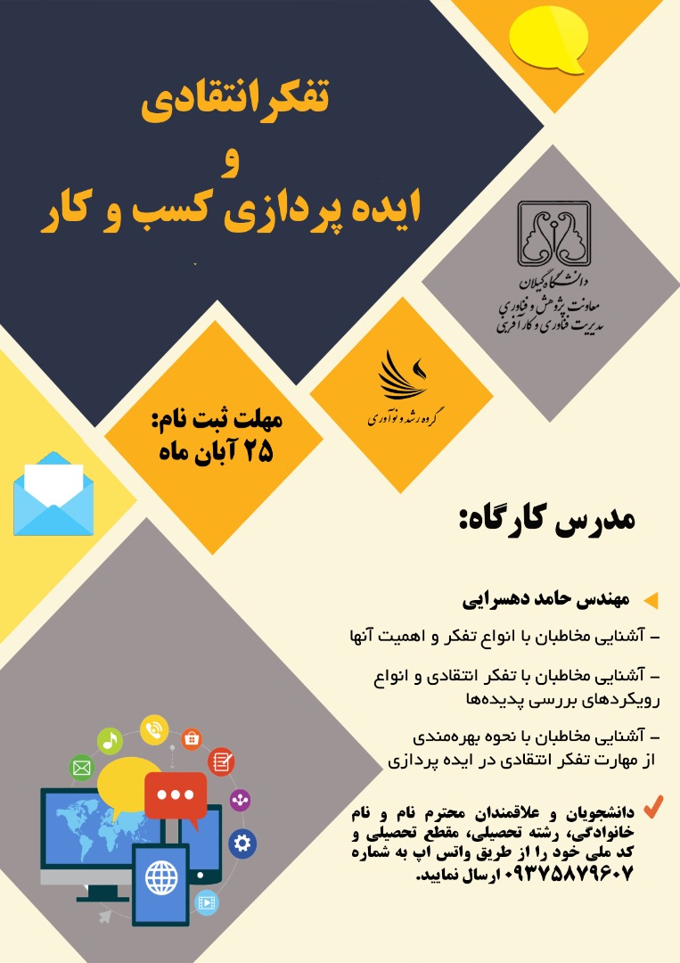 مدیریت فناوری و کارآفرینی- گروه رشد و نوآوری دانشگاه گیلان برگزار می کند: